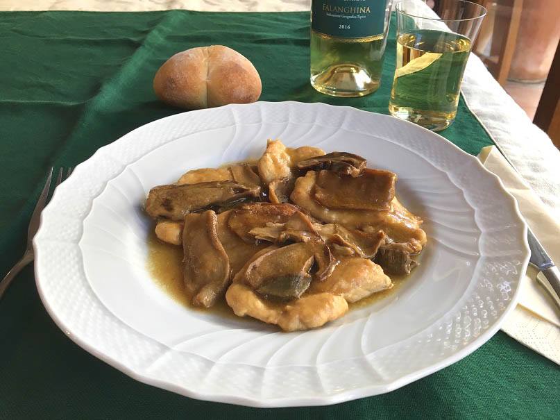 そこに白ワインをシャバーッと入れ、ポルチーニ茸と戻し汁も