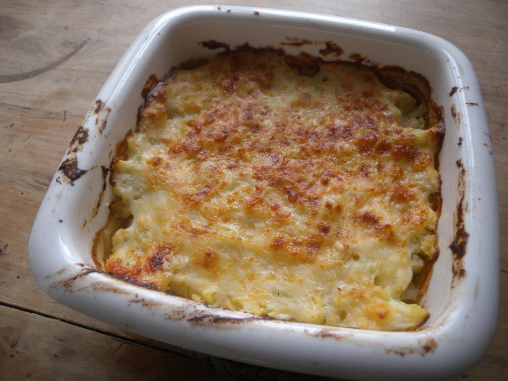 ベシャメルを上からかけ、ナツメグ、もう一度