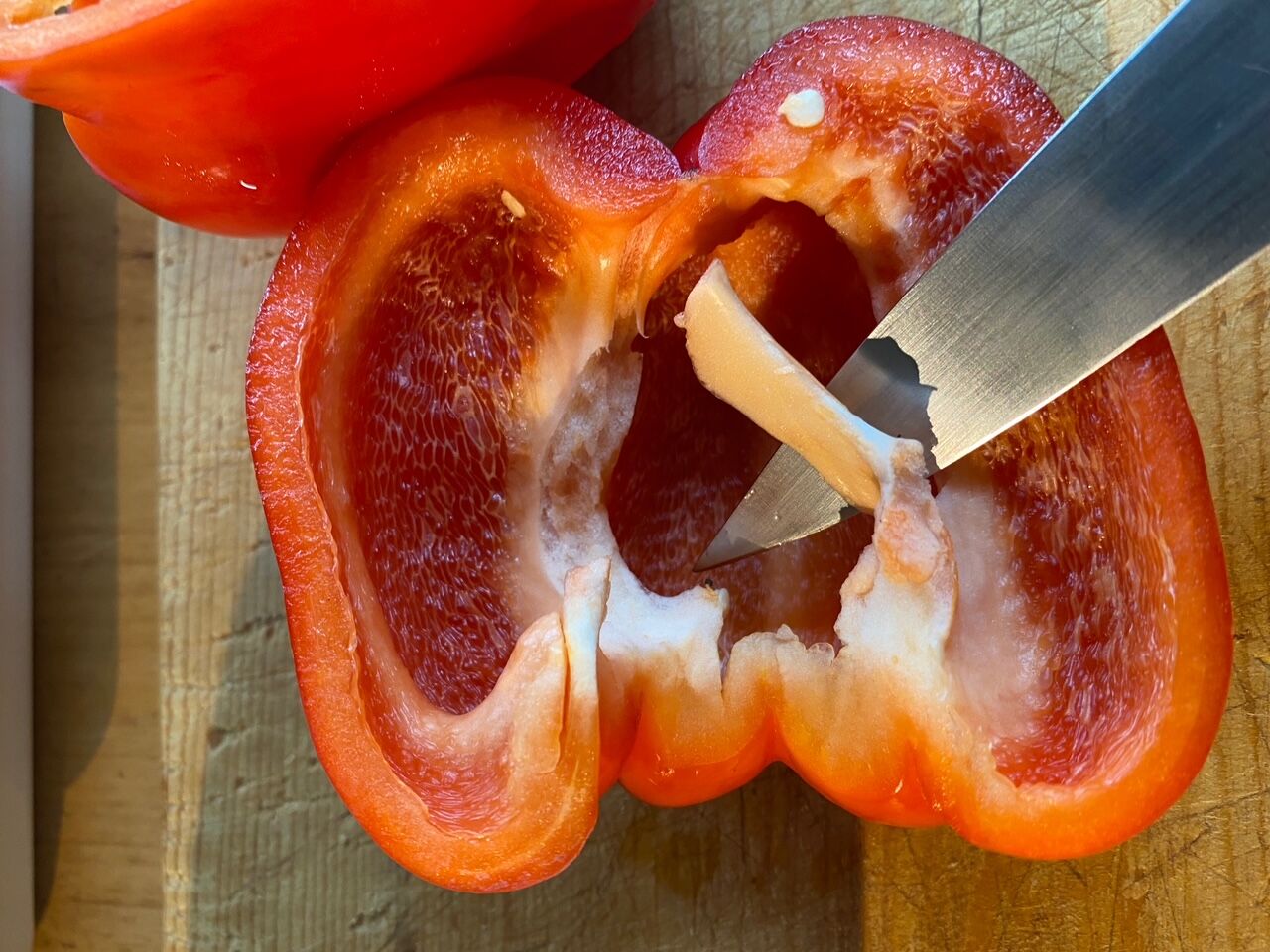 パプリカは中の種と白っぽいワタも取り除くと、