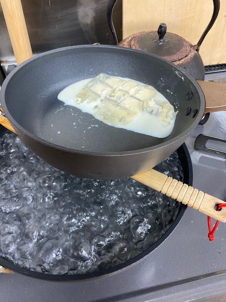 ゴルゴンゾーラとパルミジャーノと牛乳少々を余熱で