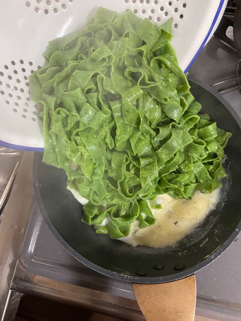 昨日のまかないはほうれん草の手打ちパスタでした。