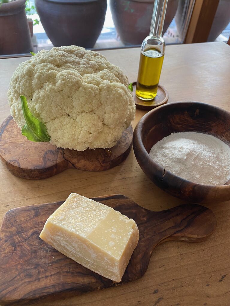 事前にクタクタに蒸したカリフラワーをにんにくとオイル、アンチョビで
