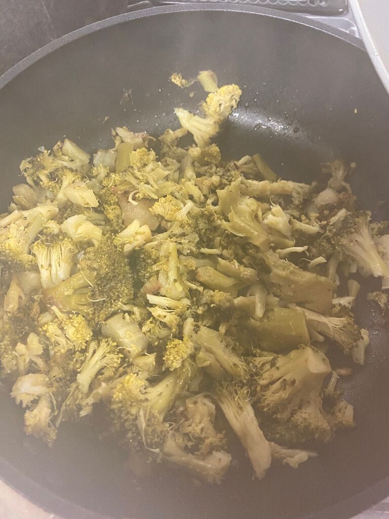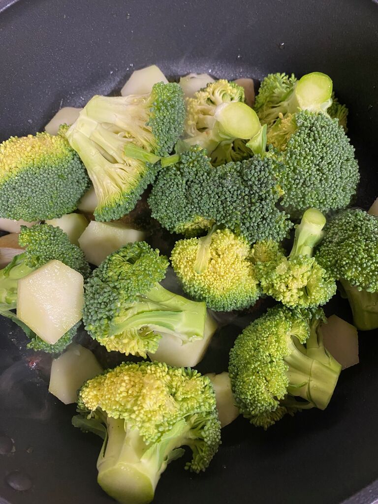 ブロッコリを蓋をして弱火で柔らかく崩れるまでゆっくり