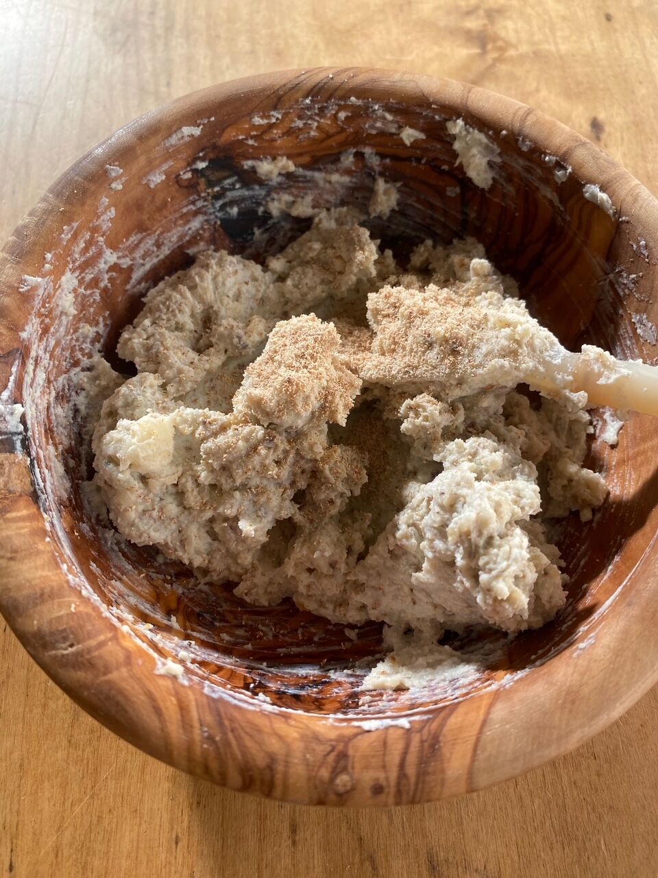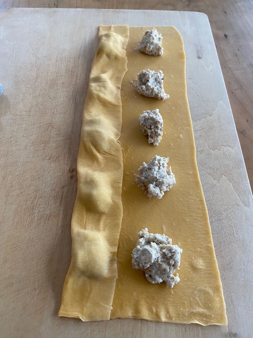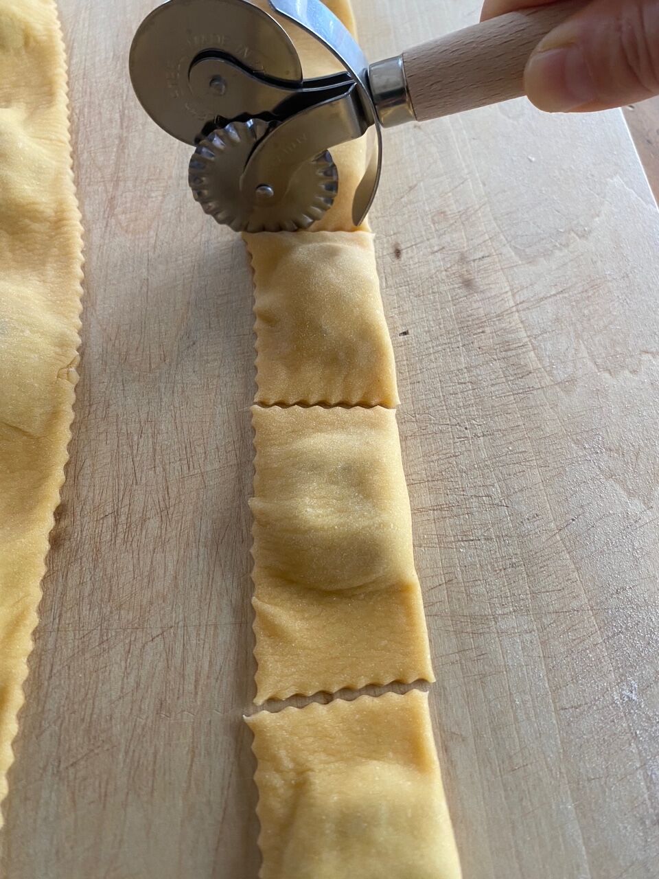 茹でたパスタを和えて最後に搾りたてのオリーブオイルを