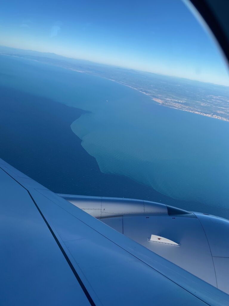 *写真は飛行機から見た地中海。ローマの友人宅(トスカの