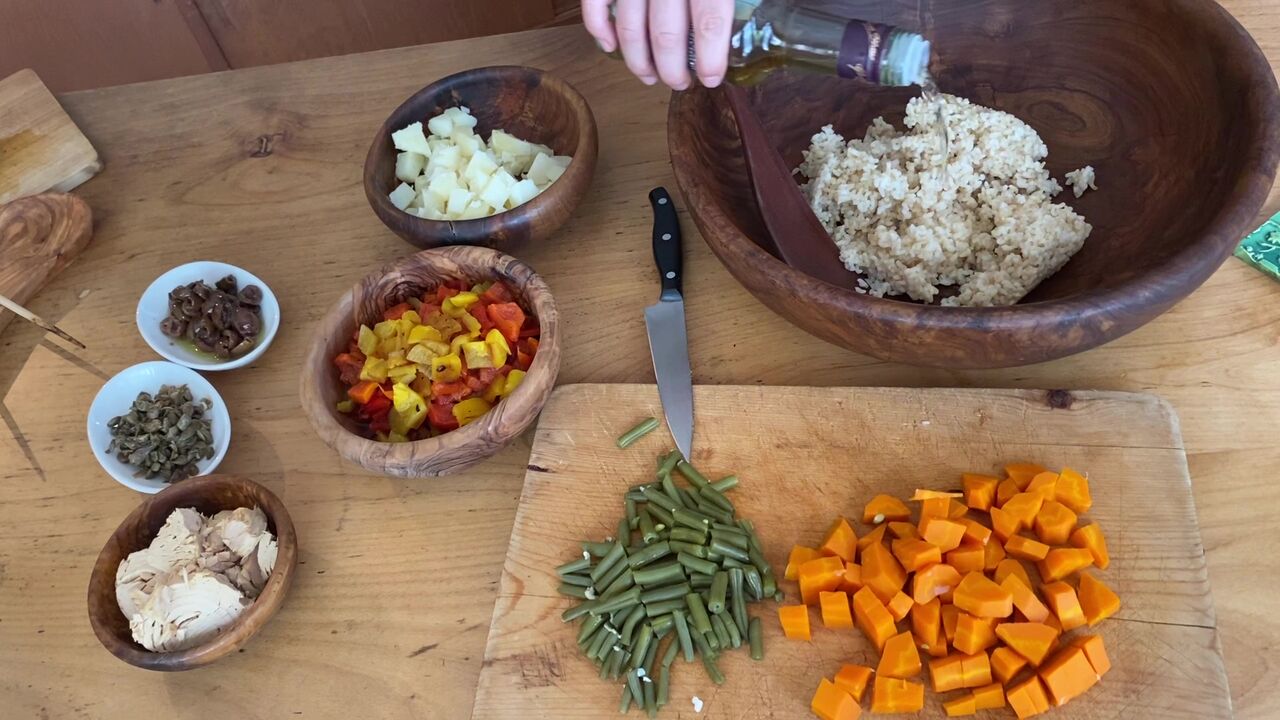 玄米が苦手な人でもオリーブオイルと野菜がつないでくれるので、