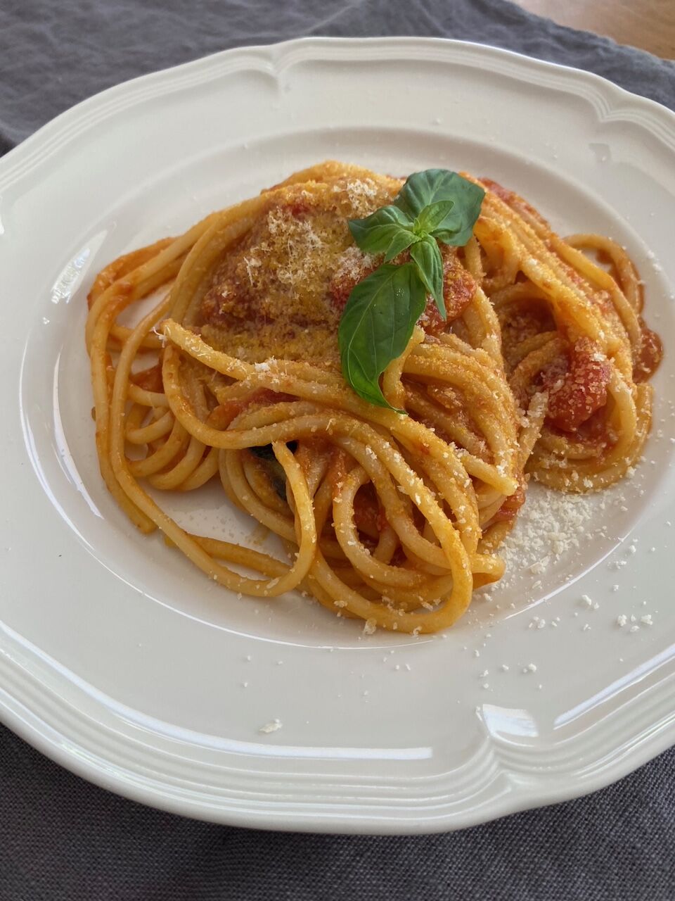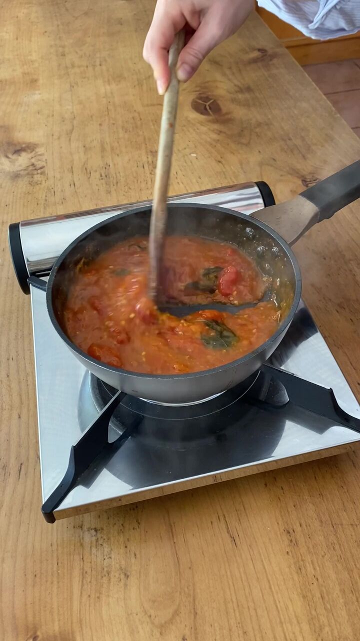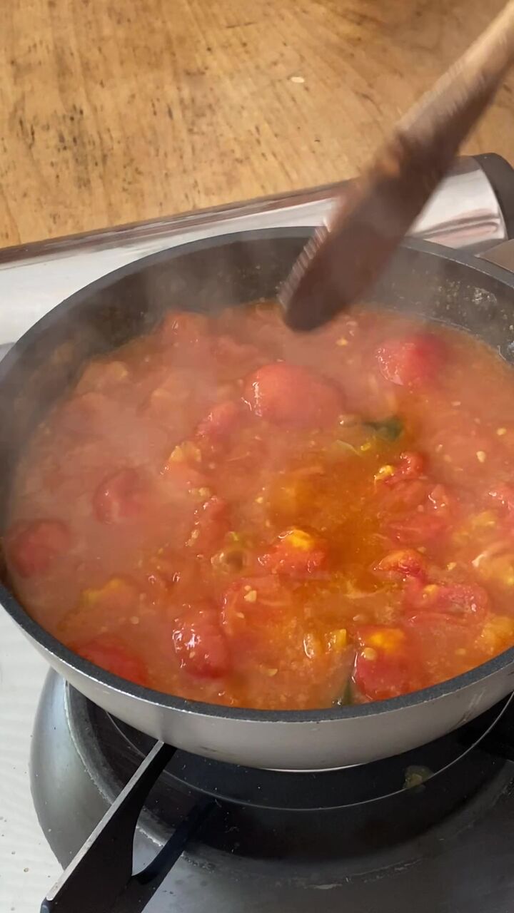 *トマトピューレはアルチェネーロさんのを使っています。自分で畑で植えて