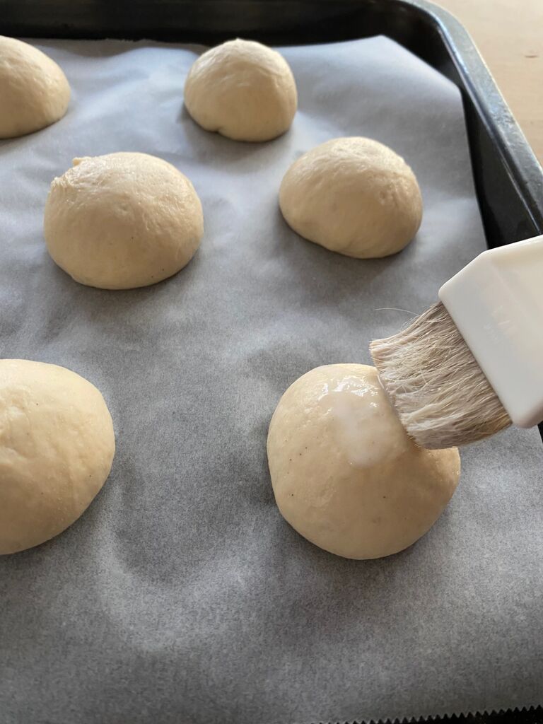 入れた良い香りのオリーブオイルを刷毛で裏表塗ります。