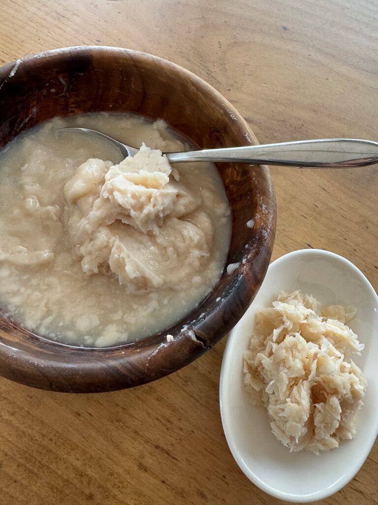 無塩パン。そして玉ねぎ、にんじん、セロリ、じゃがいもをベースに、