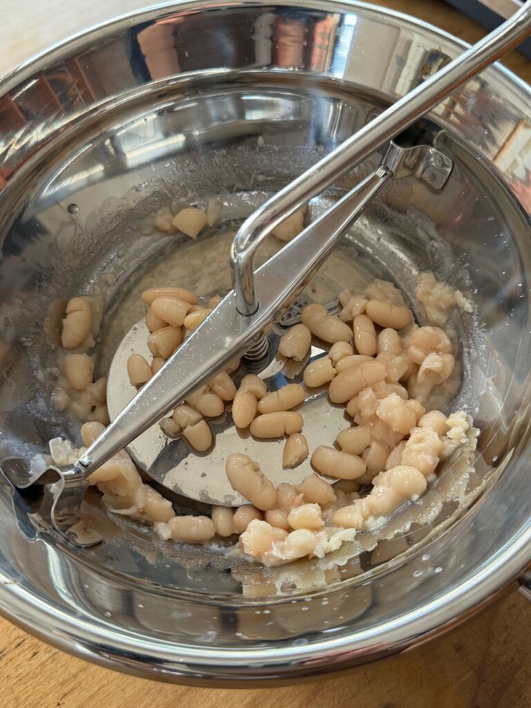 その後煮たインゲン豆の3分の2を濾し器で濾し、ピューレ状にして