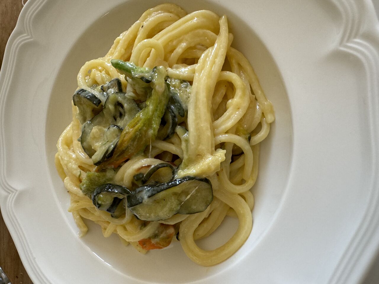 写真は滞在中に作ったものです。ズッキーニと花のカルボナーラ、肉団子の手打ちパスタ、羊のリコッタチーズのケーキ、パプリカのパスタ、無塩パンと畑のトマトのクリーム、硬くなったパンとオリーブの実のパプリカ詰め、ラザニア。パンとトマトを煮たクリームは写真がちょっと暗いのですが、無塩パンの活用法を今度ご紹介できたらと思います!闘病中のシルヴィオがだんだん元気になっていって、食事の大切さを改めて実感した1ヶ月でした。
