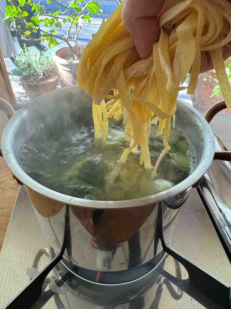 この料理は生のオリーブオイルに熱々のパスタとブロッコリーを加えた時にフワッと青い香りがたちあがり、料理そのものをおいしくしてくれます。ブロッコリーは柔らかく手で簡単につぶれるまで煮るのが特徴です。
