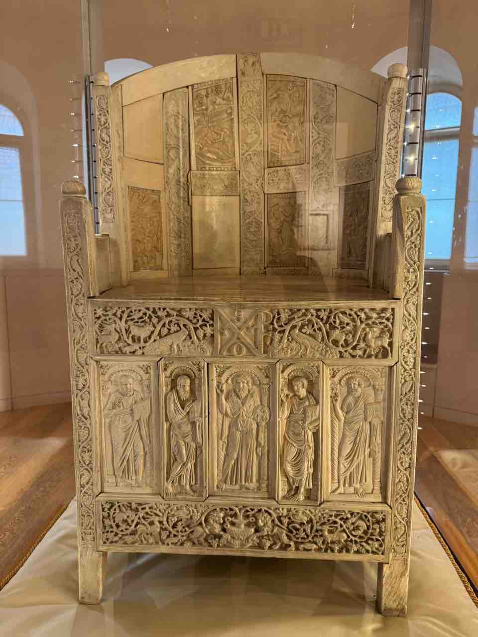 写真は昔の暦、象牙の椅子、ダンテの図書館、サンフランチェスコ聖堂の水中の
