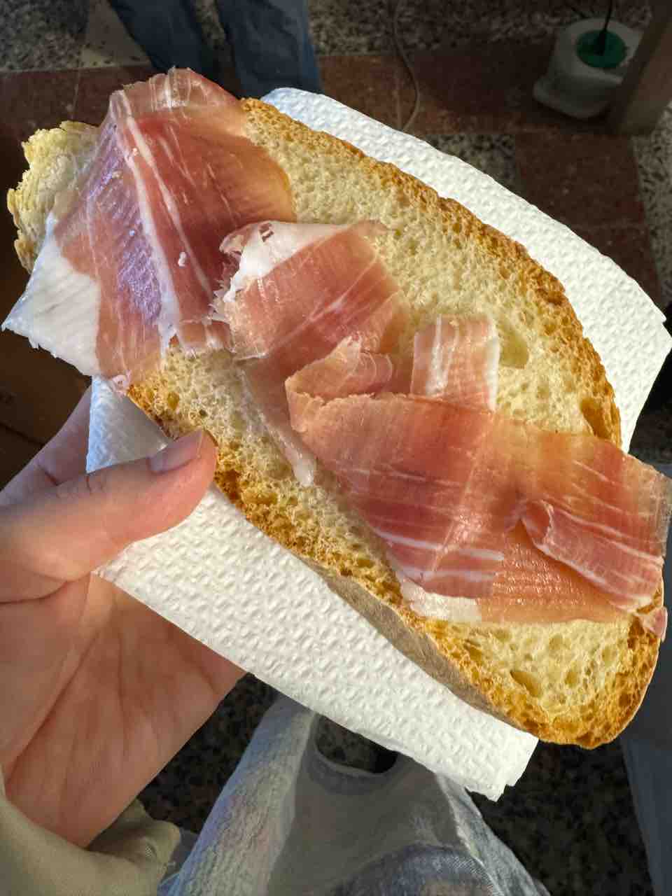休憩の時に去年作った生ハムをパンにのせていただきました。昔この生ハムが食べたくて豚の解体を始めたのを思い出しました。