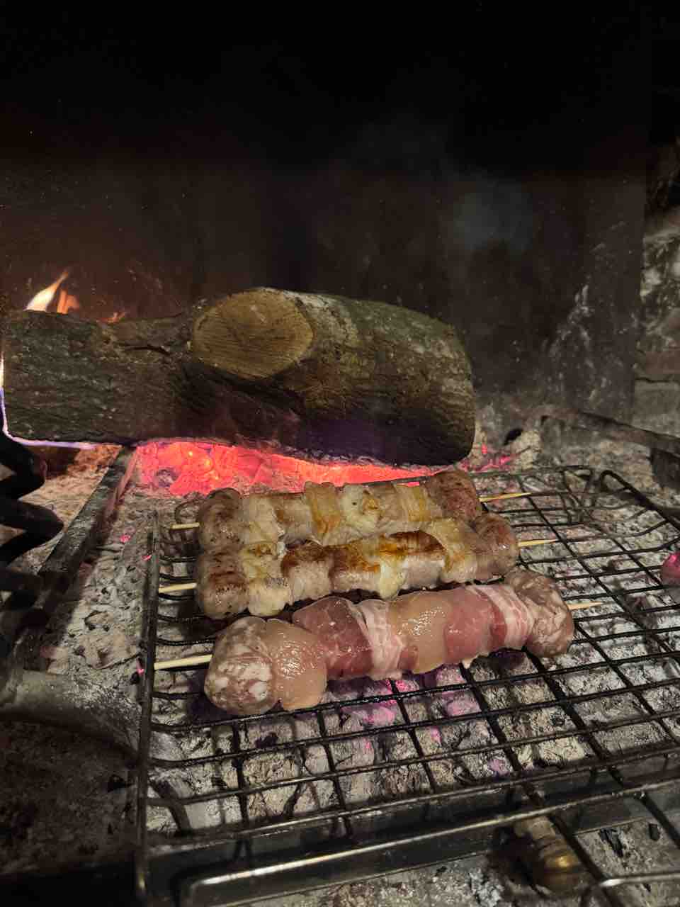 暖炉で焼いて食べました。サルシッチャや鶏胸肉、豚のお腹の肉など