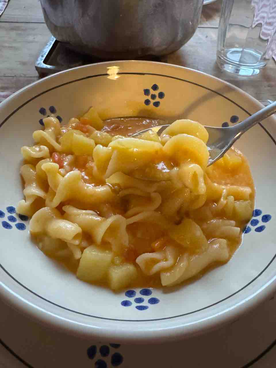 硬めに茹でたパスタとゆで汁も入れ、さらに煮て、